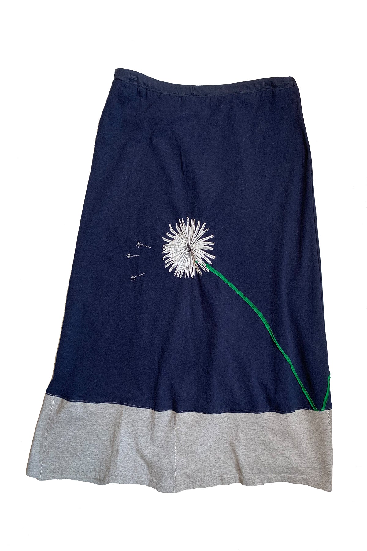 Long Skirts are made with high quality, up-cycled t-shirts. Freestyle sewn images are appliquéd on panels of various colors making each skirt unique and interesting.