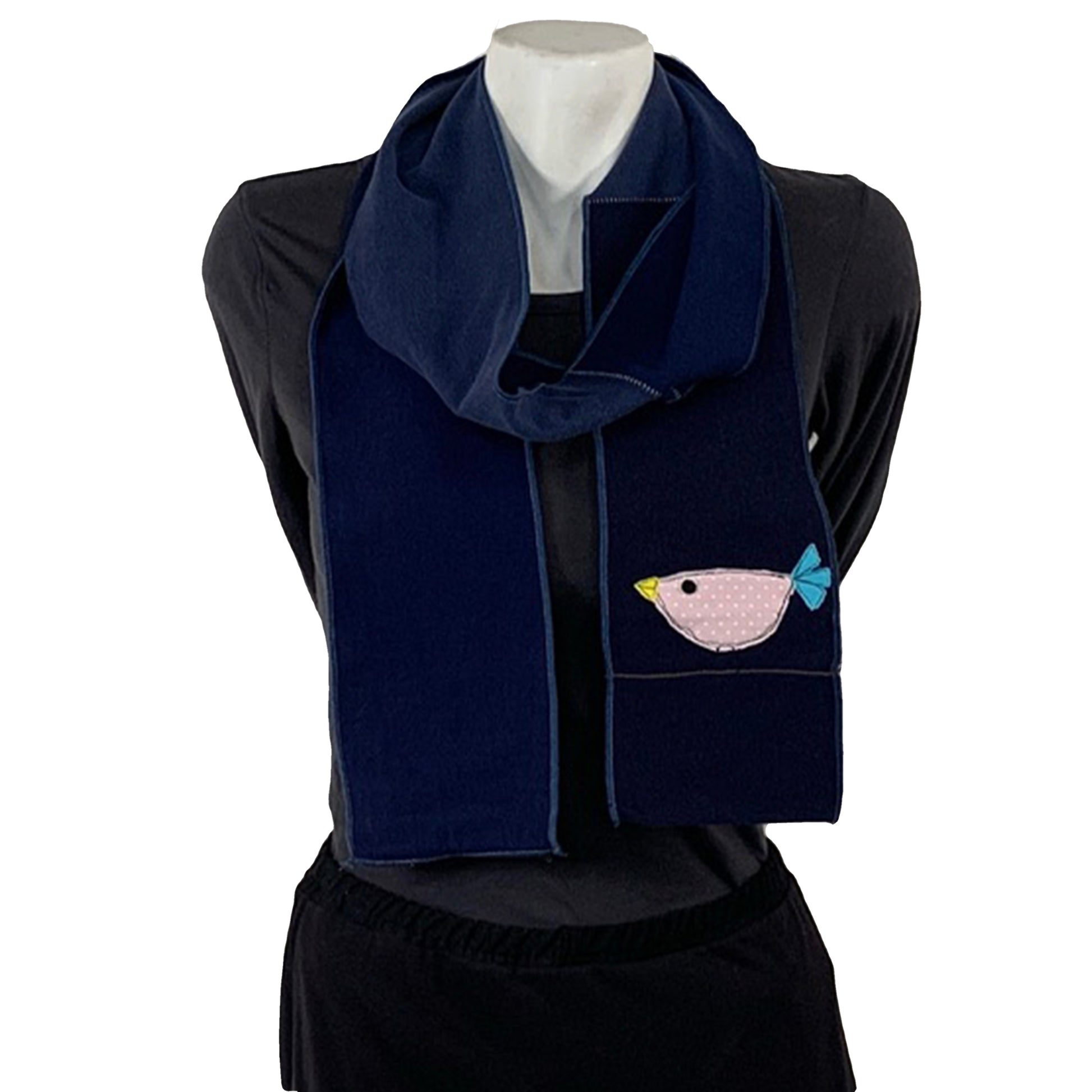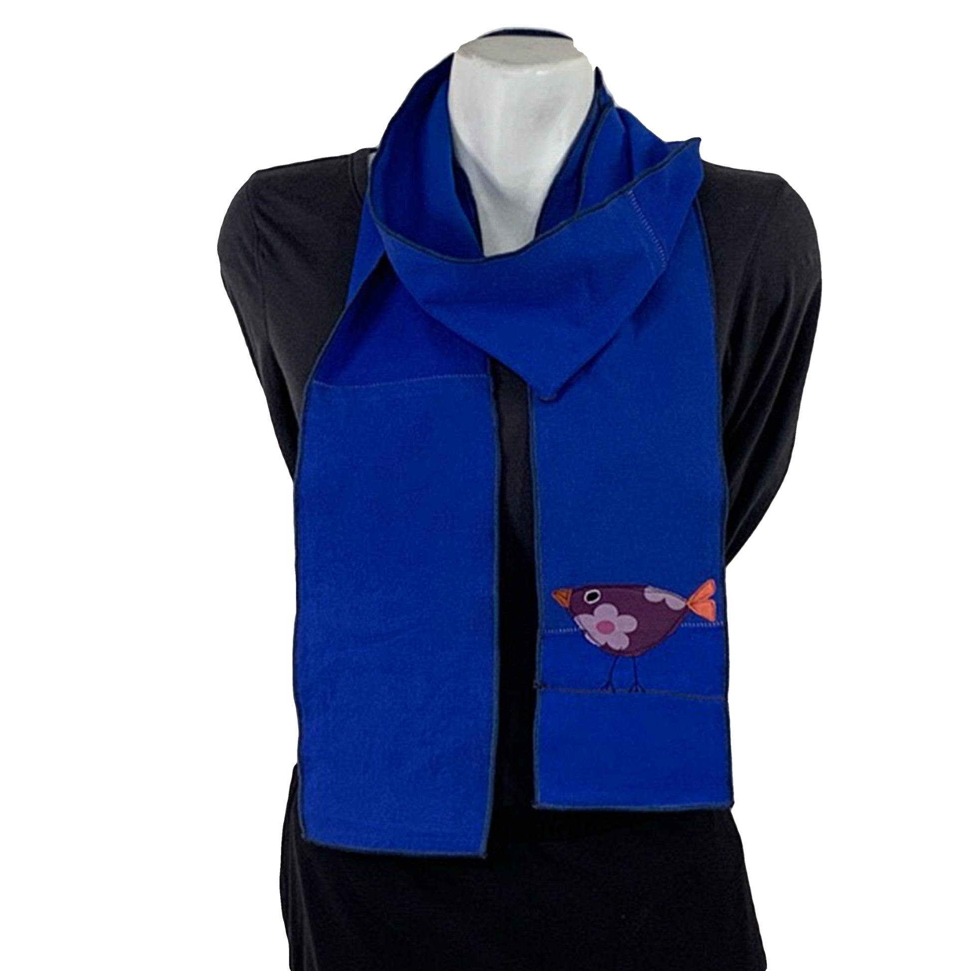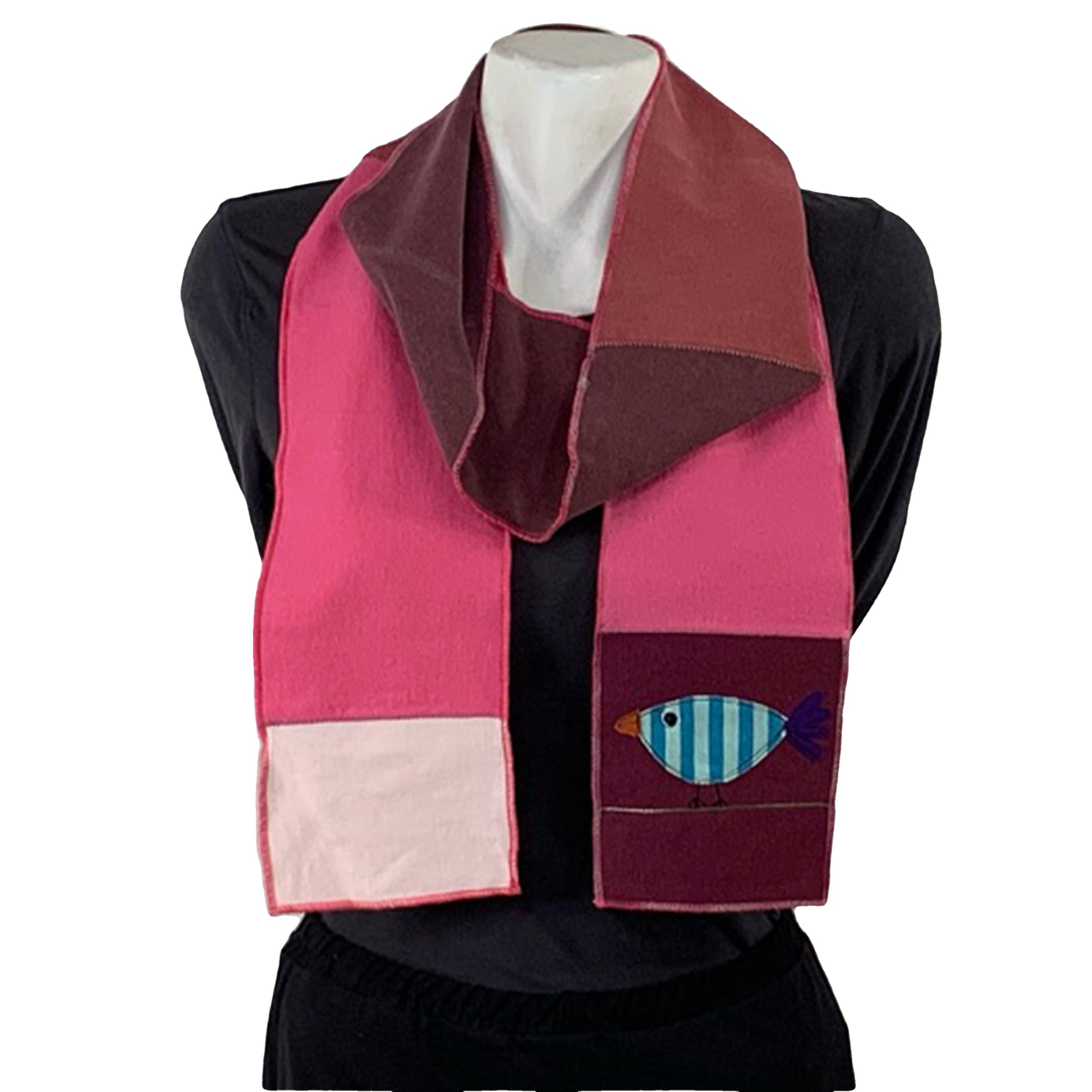 appliquéd scarves are made from 100% recycled and double paneled cotton t-shirts. The roughly 48" inch length allows you wrap the scarves once or twice and still show off the unique appliquéd image. The soft nature of cotton and unique images make these scarves a great way brighten up any outfit!