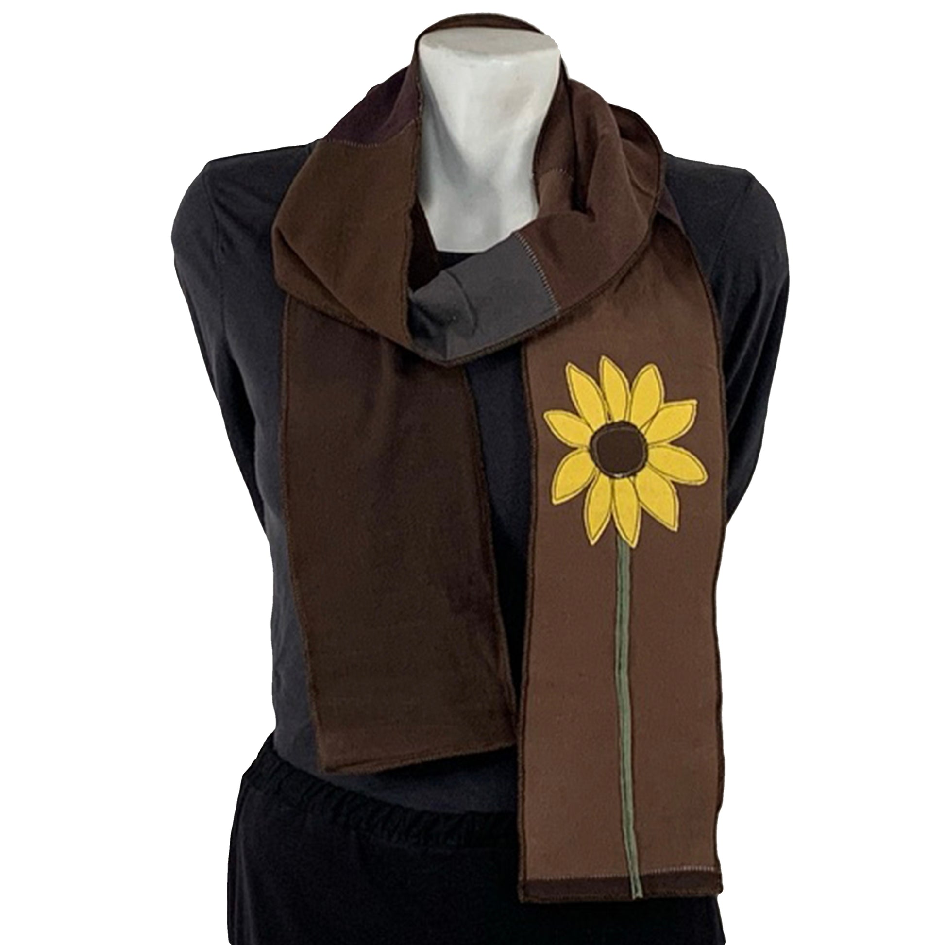 appliquéd scarves are made from 100% recycled and double paneled cotton t-shirts. The roughly 48" inch length allows you wrap the scarves once or twice and still show off the unique appliquéd image. The soft nature of cotton and unique images make these scarves a great way brighten up any outfit!