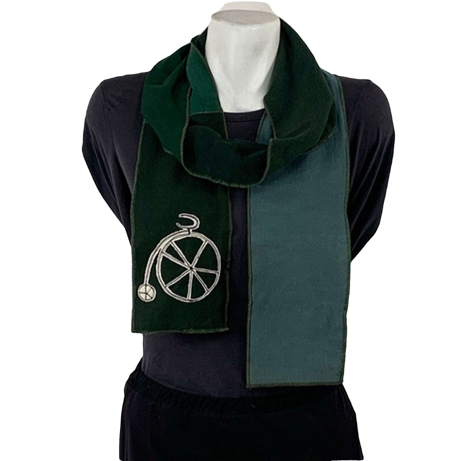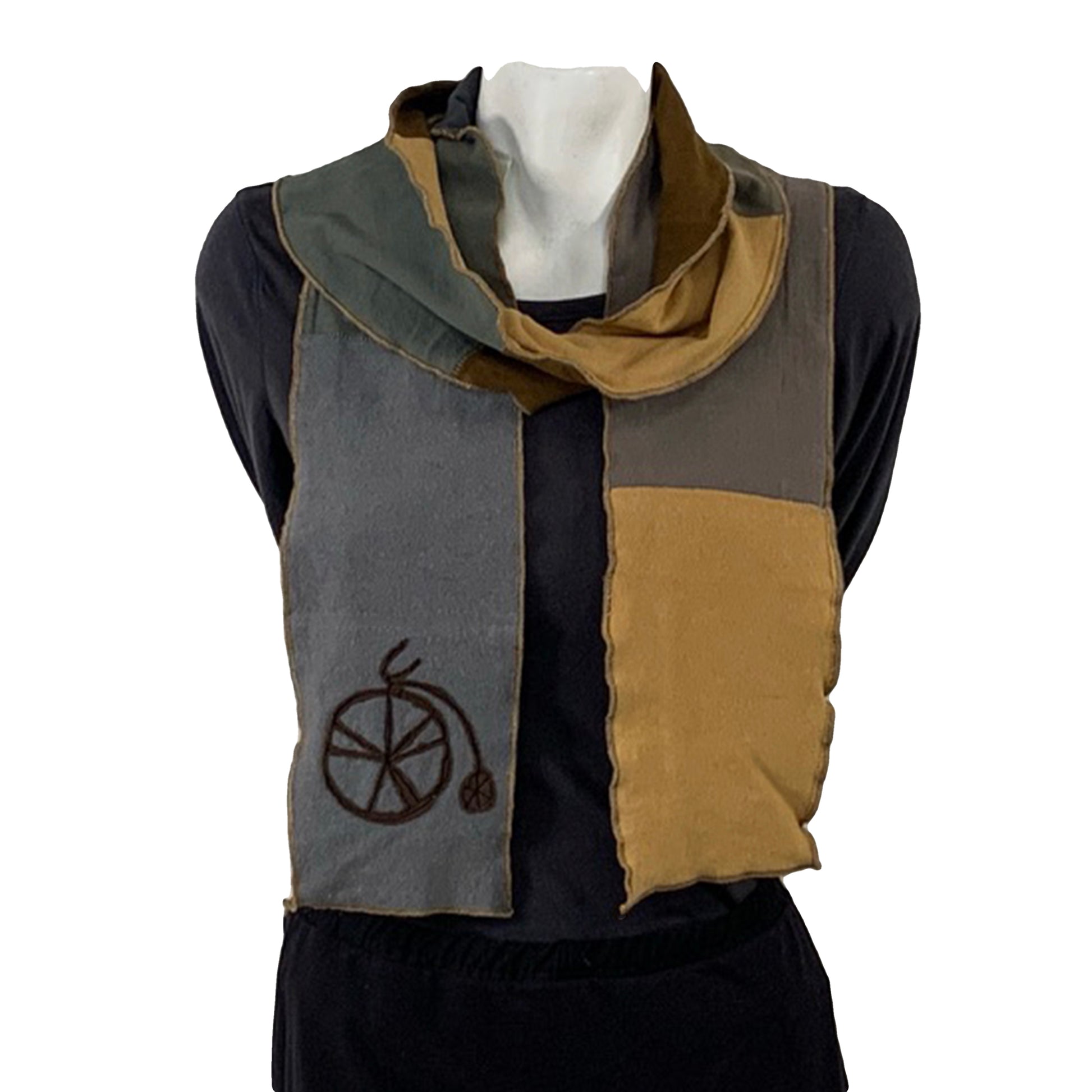 appliquéd scarves are made from 100% recycled and double paneled cotton t-shirts. The roughly 48" inch length allows you wrap the scarves once or twice and still show off the unique appliquéd image. The soft nature of cotton and unique images make these scarves a great way brighten up any outfit!