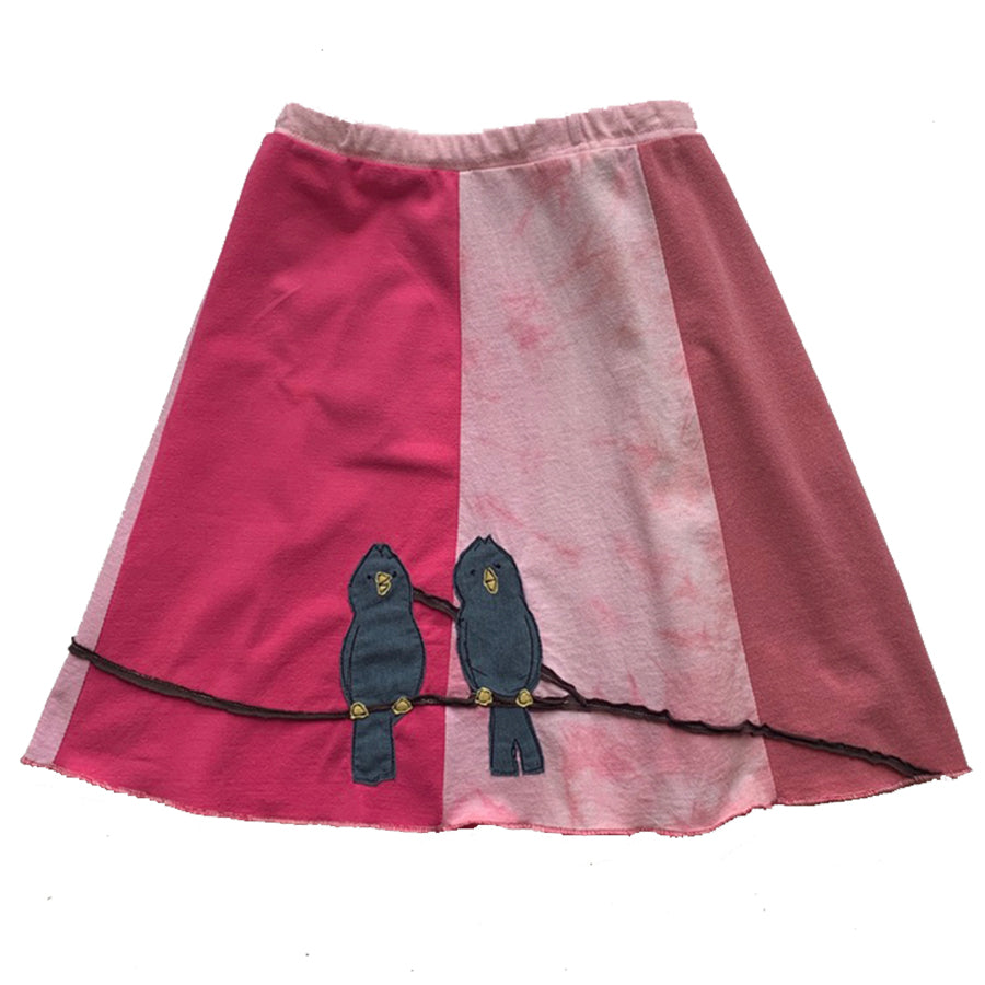 Classic Appliqué skirts are made with high quality, up-cycled t-shirts. Freestyle sewn images are appliquéd on panels of various colors making each skirt unique and interesting. Each skirt has a convenient pocket. Since there is no real “front” or “back”of this skirt, simply place the pocket where you like.