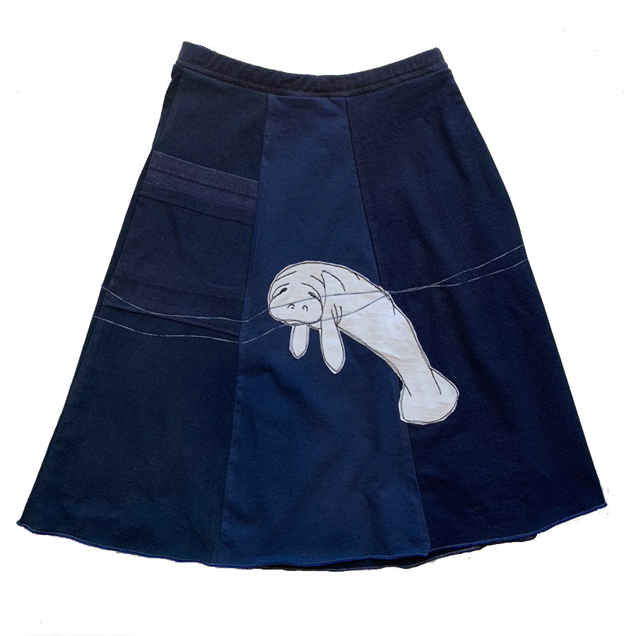 Classic Appliqué skirts are made with high quality, up-cycled t-shirts. Freestyle sewn images are appliquéd on panels of various colors making each skirt unique and interesting. Each skirt has a convenient pocket. Since there is no real “front” or “back”of this skirt, simply place the pocket where you like.