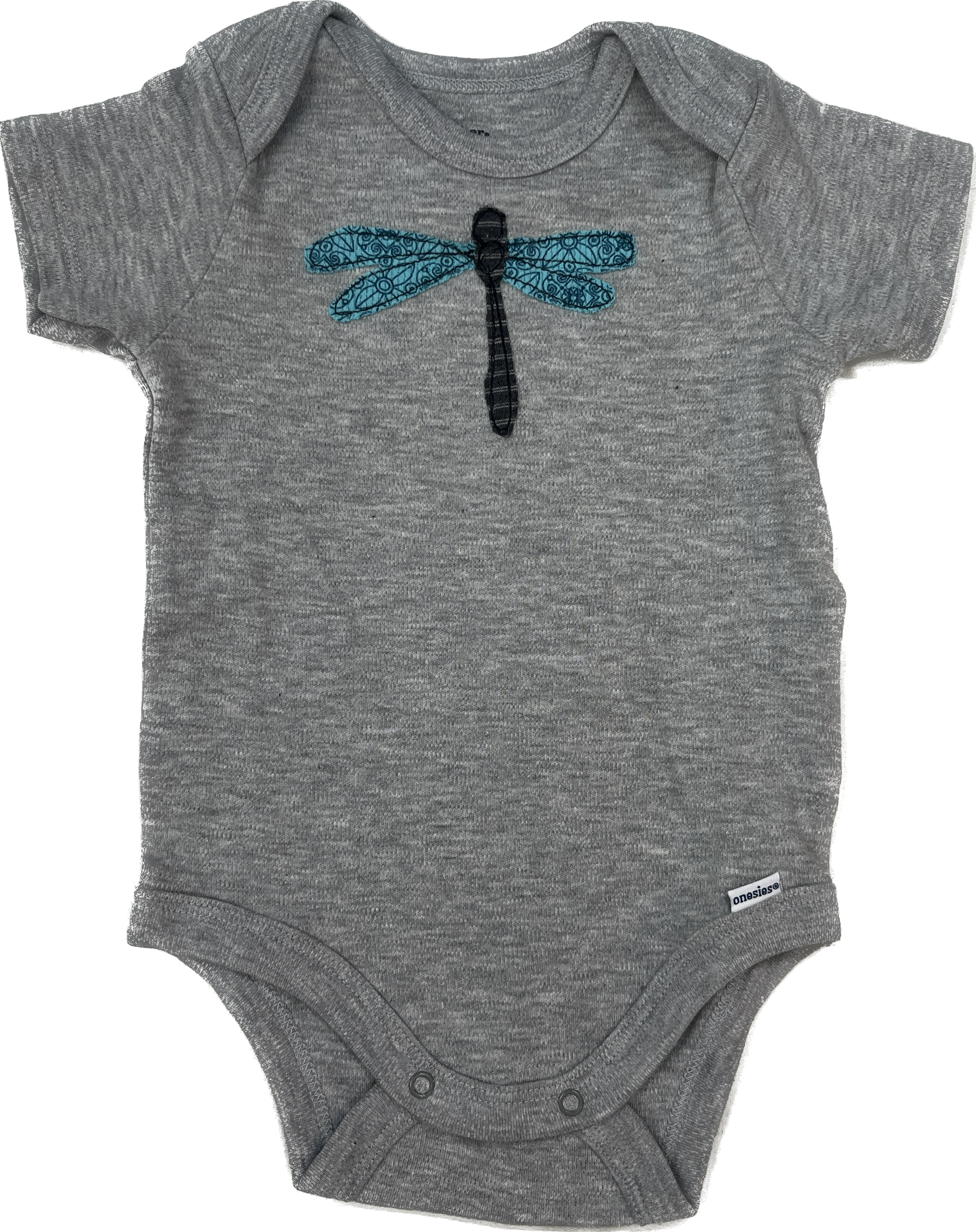 Have you been searching for a one of a kind onesie? This dragonfly onesie fits the bill for sure! This short sleeve onesie is made from 100% cotton with a dragonfly applique front and center!