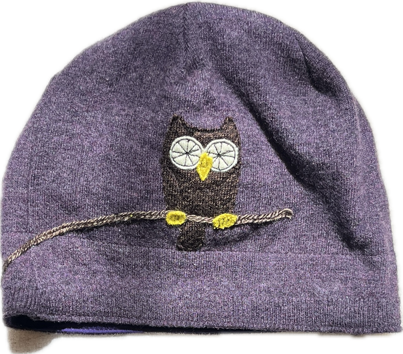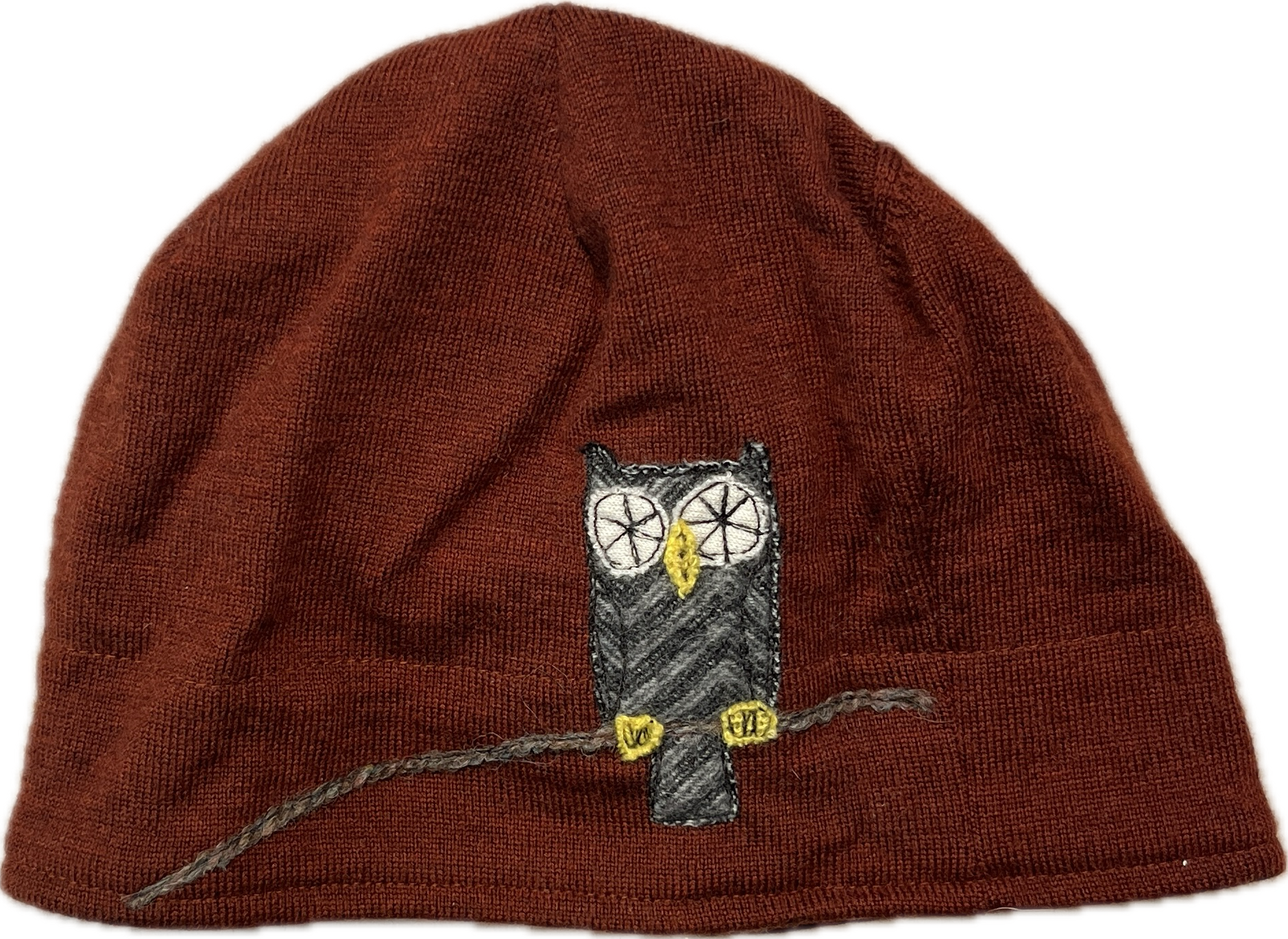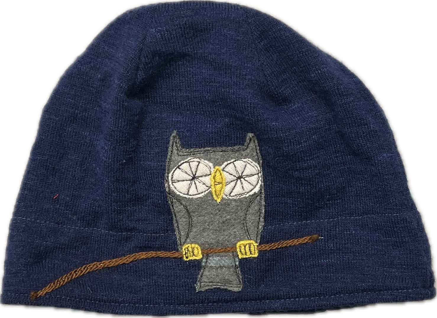 Our felted wool hats are individually made from recycled felted, wool sweaters. Each hat is lined with a coordinating jersey knit. Playful images are free style sewn making each hat one of a kind!