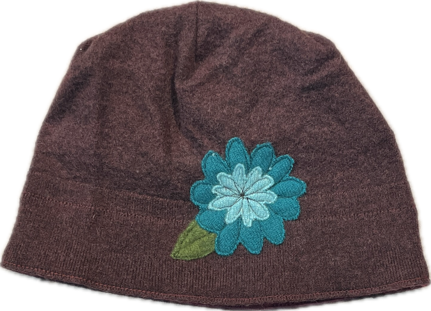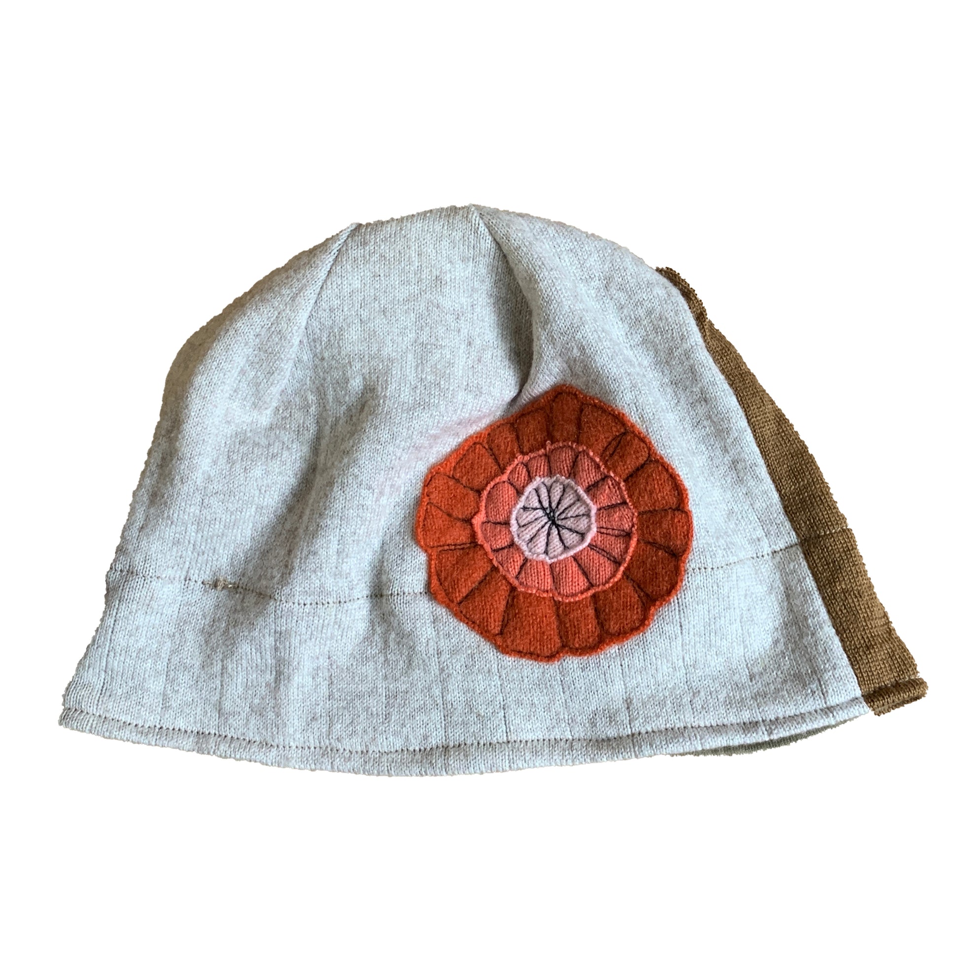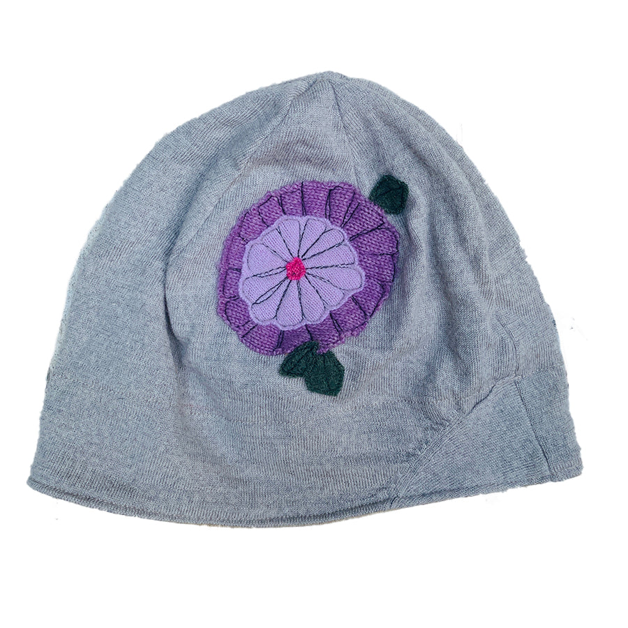 Our felted wool hats are individually made from recycled felted, wool sweaters. Each hat is lined with a coordinating jersey knit. Playful images are free style sewn making each hat one of a kind!