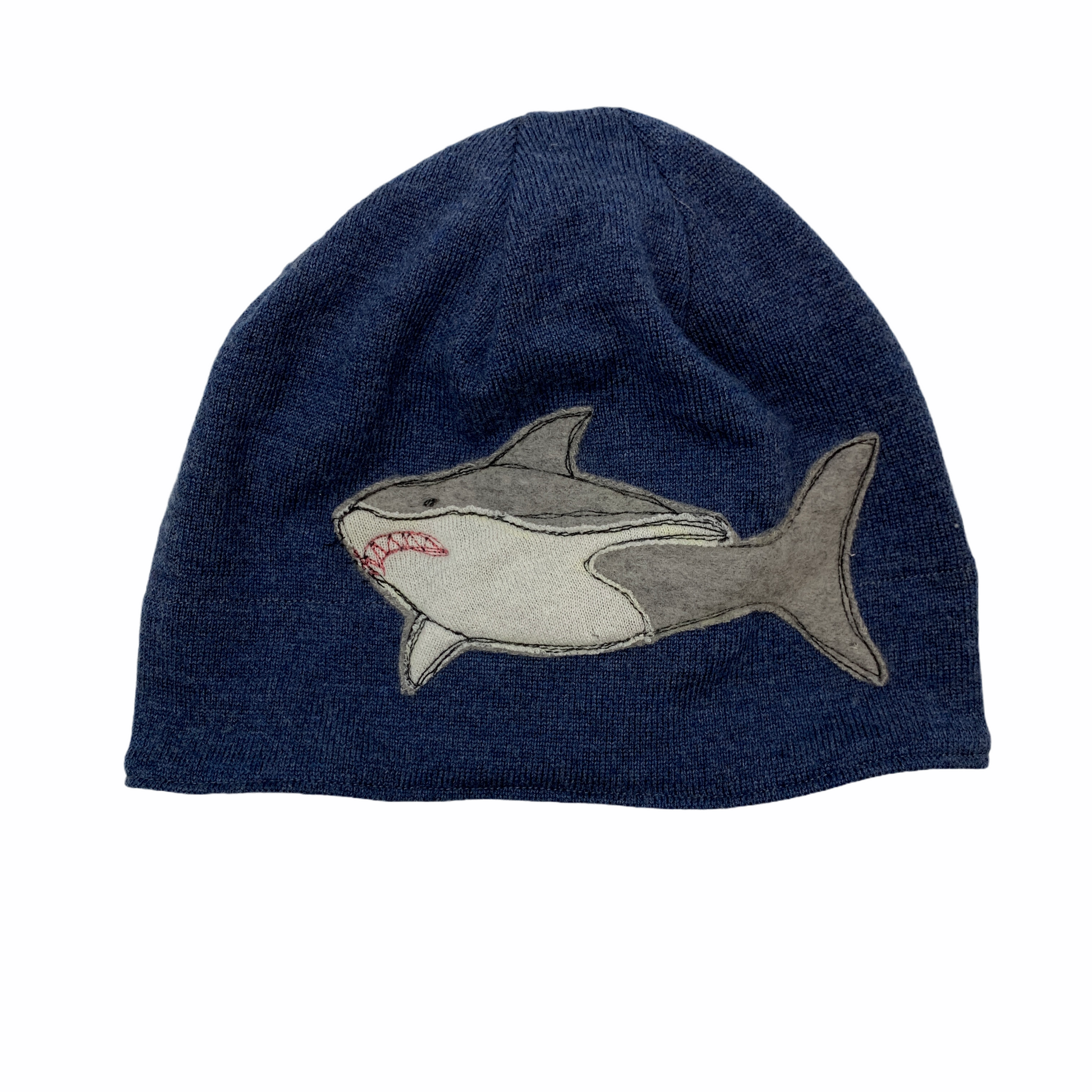 Our felted wool hats are individually made from recycled felted, wool sweaters. Each hat is lined with a coordinating jersey knit. Playful images are free style sewn making each hat one of a kind!