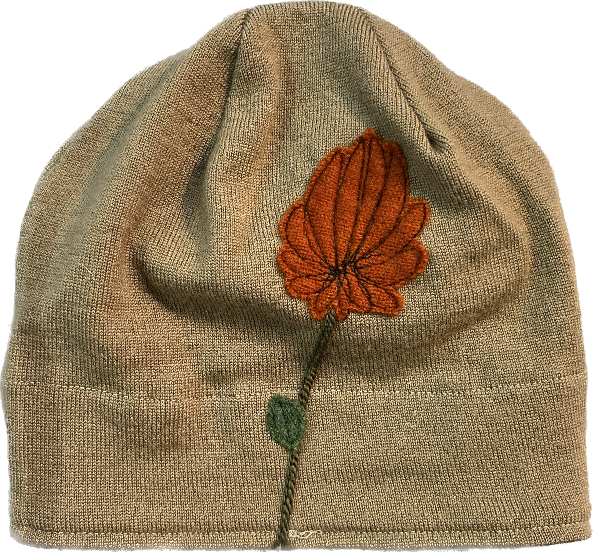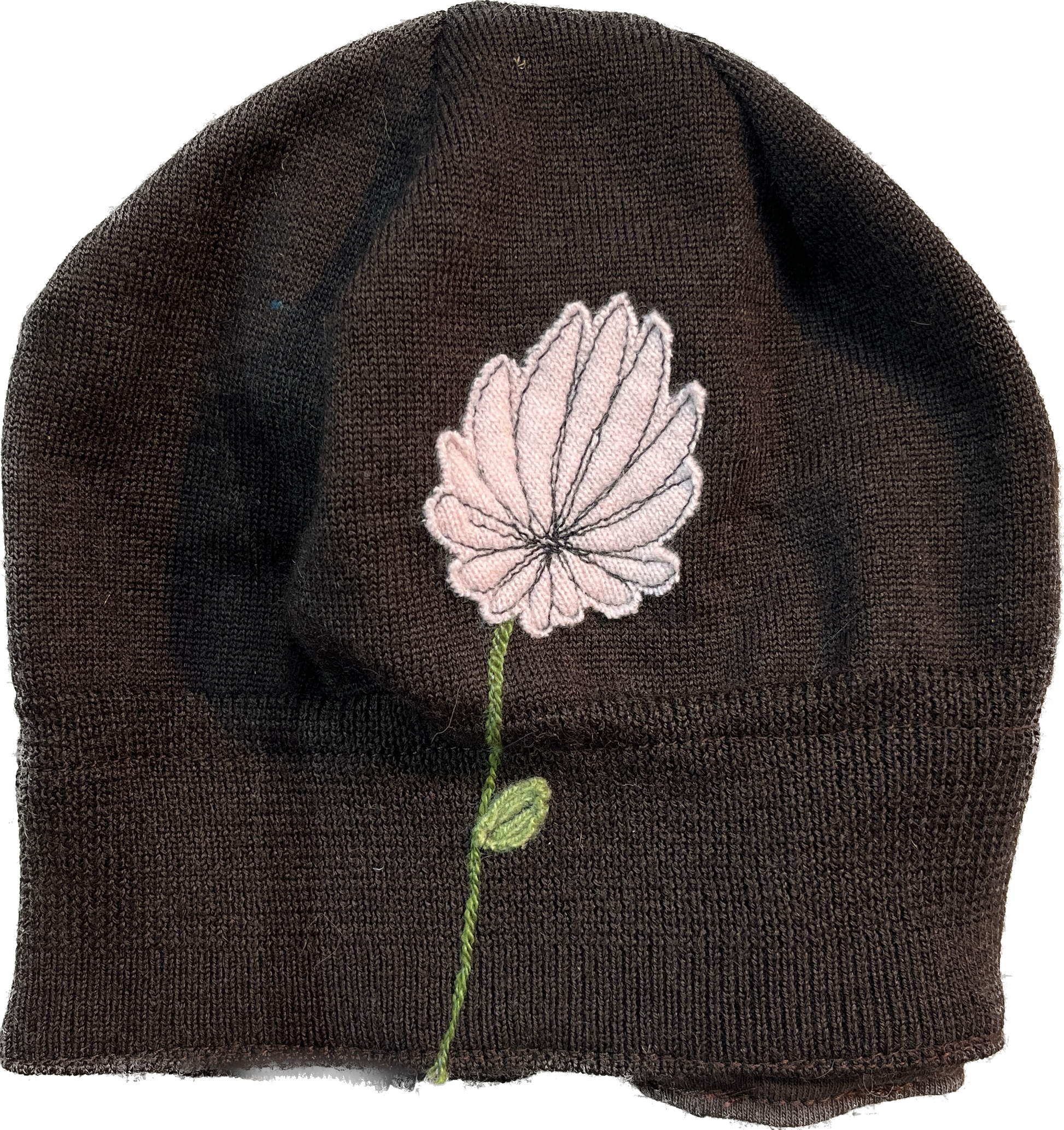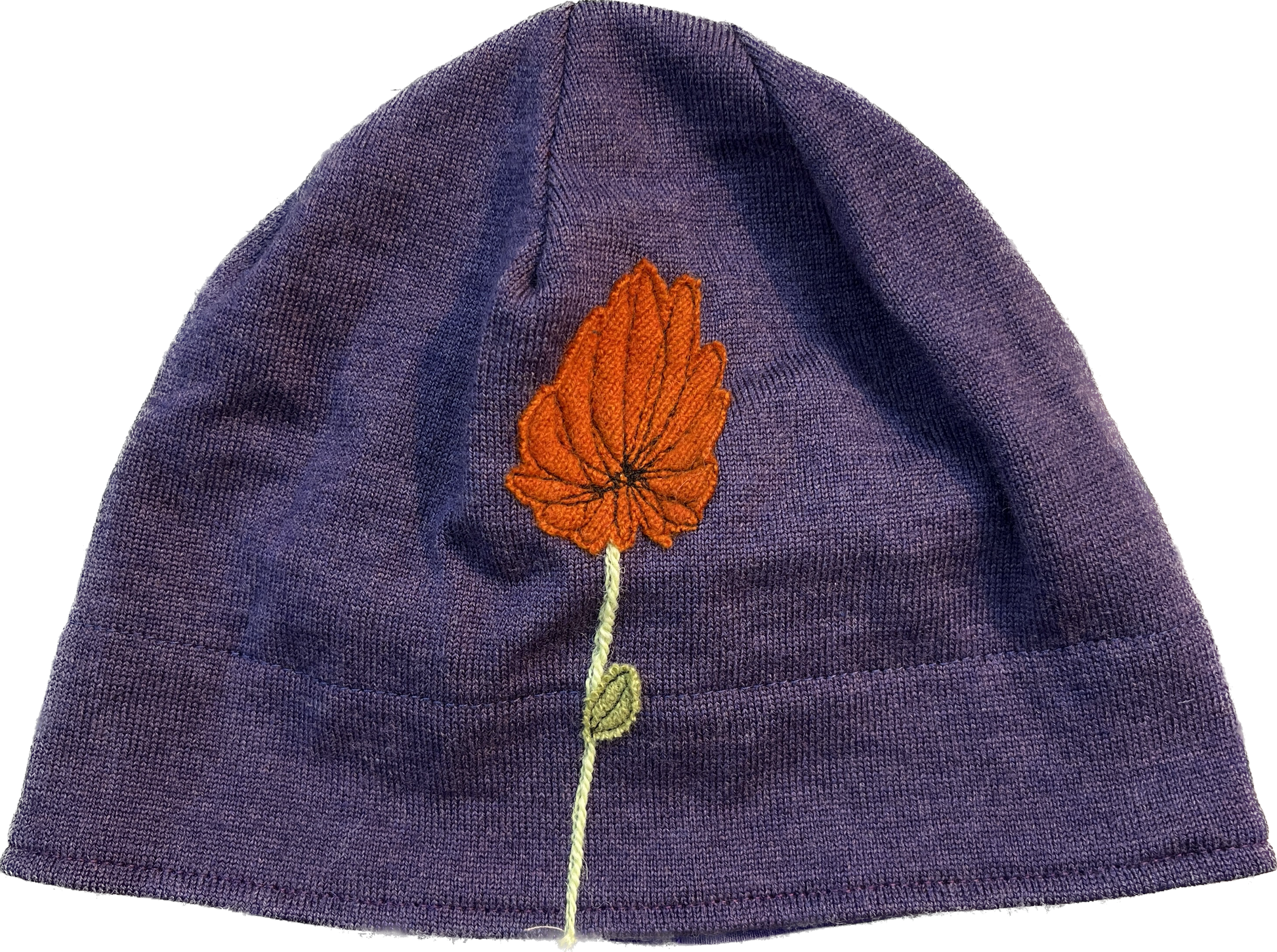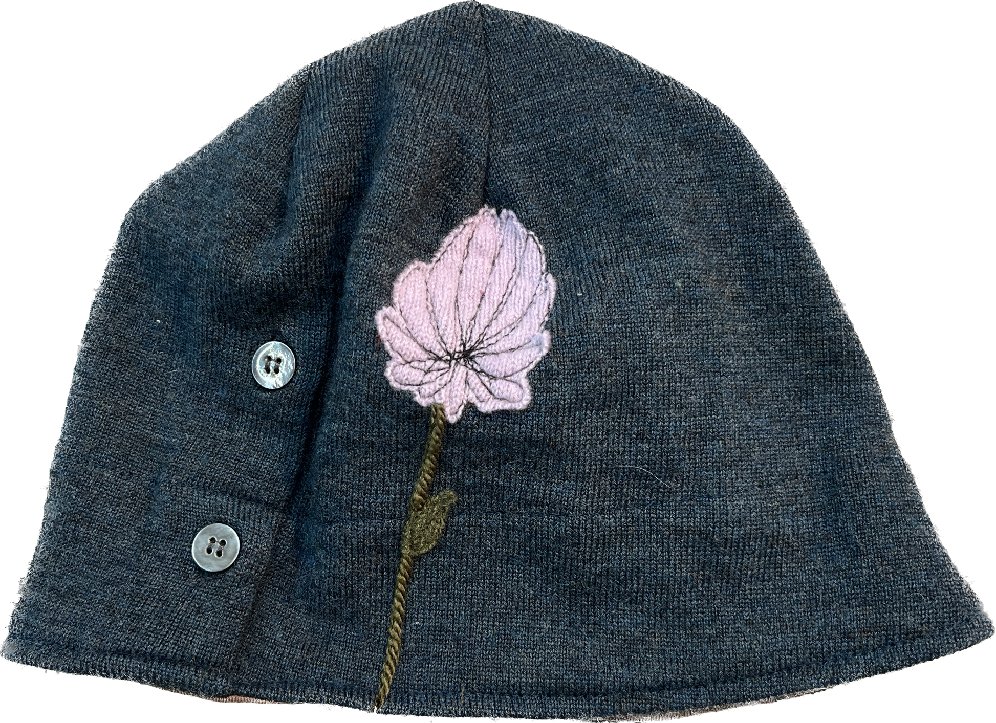 Our felted wool hats are individually made from recycled felted, wool sweaters. Each hat is lined with a coordinating jersey knit. Playful images are free style sewn making each hat one of a kind!