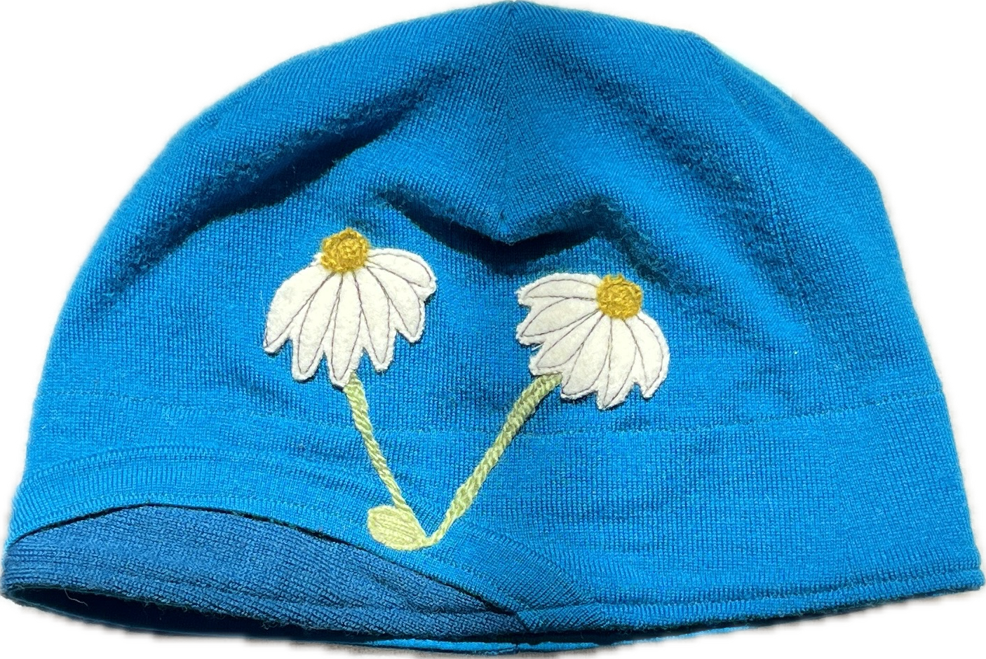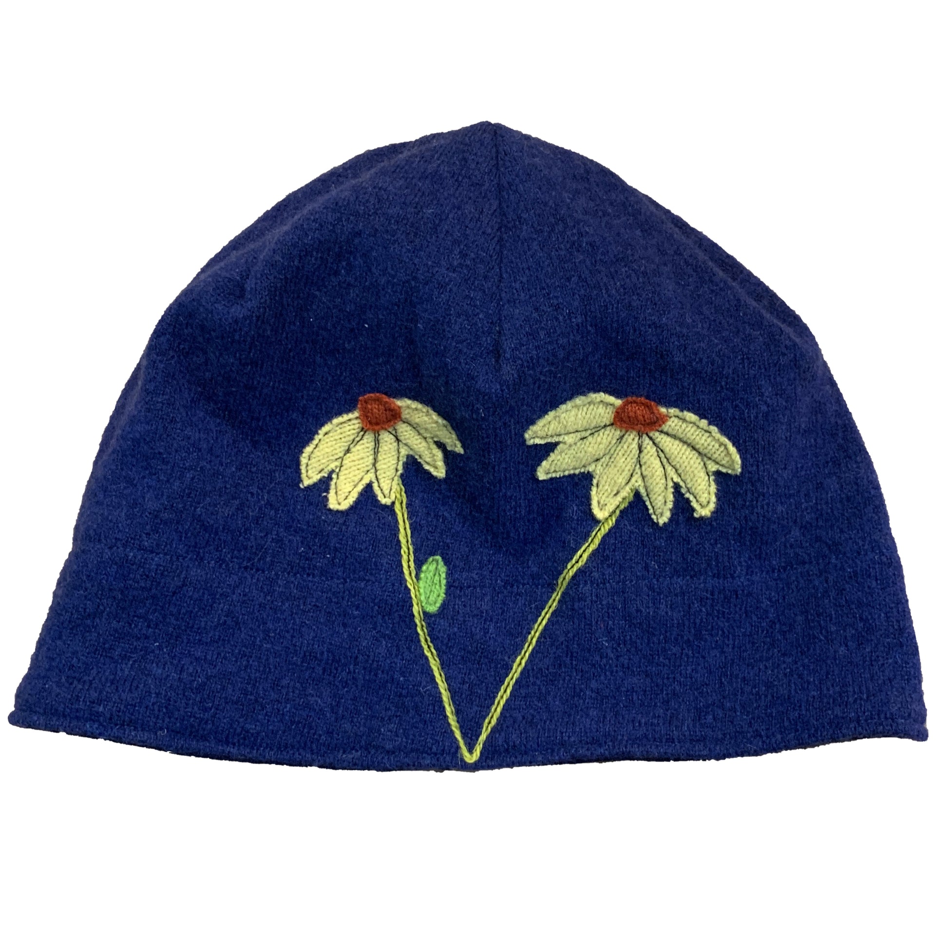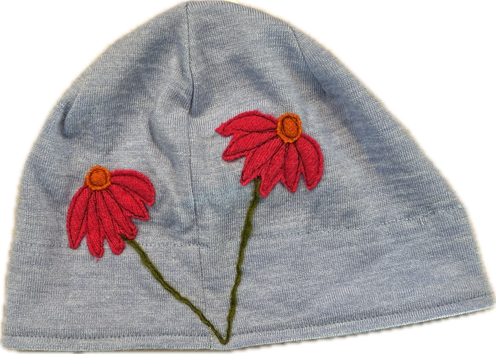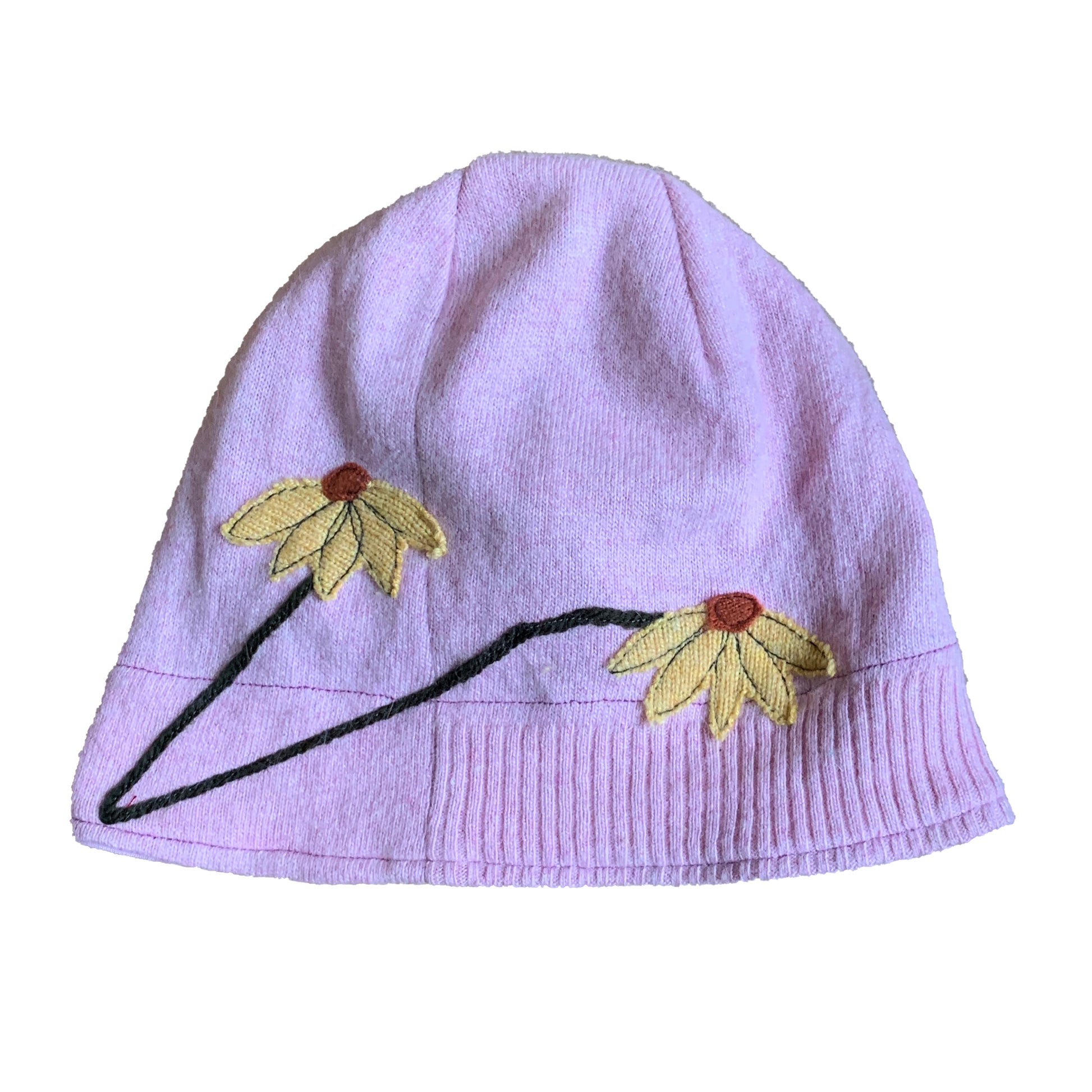 Our felted wool hats are individually made from recycled felted, wool sweaters. Each hat is lined with a coordinating jersey knit. Playful images are free style sewn making each hat one of a kind!