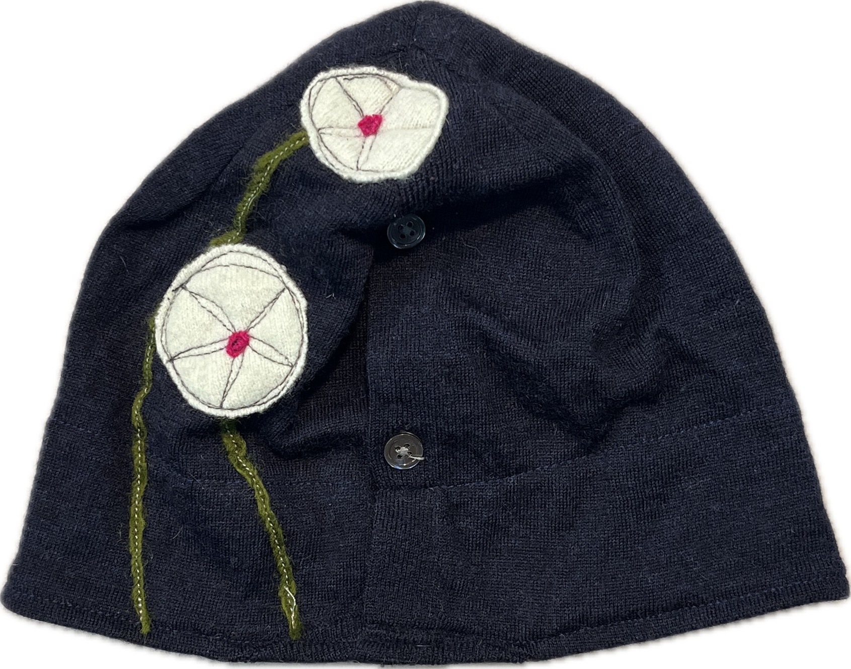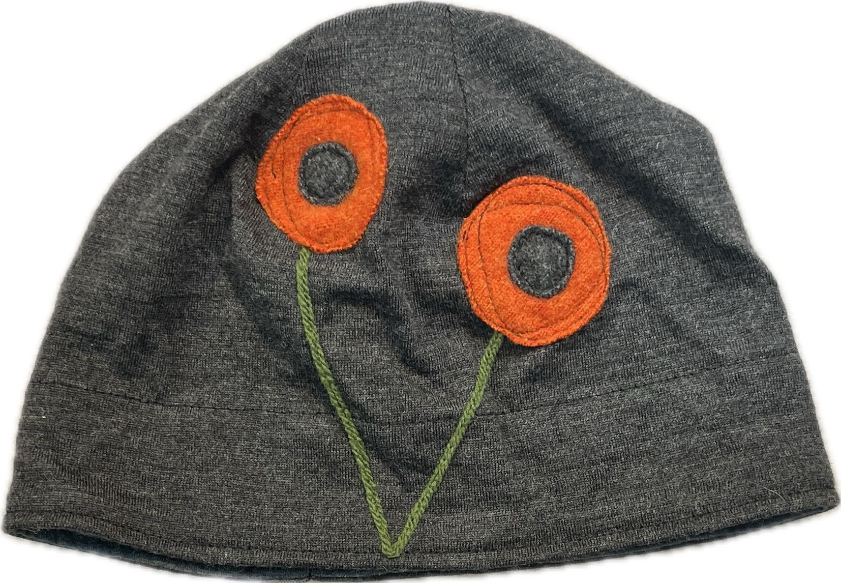 Our felted wool hats are individually made from recycled felted, wool sweaters. Each hat is lined with a coordinating jersey knit. Playful images are free style sewn making each hat one of a kind!
